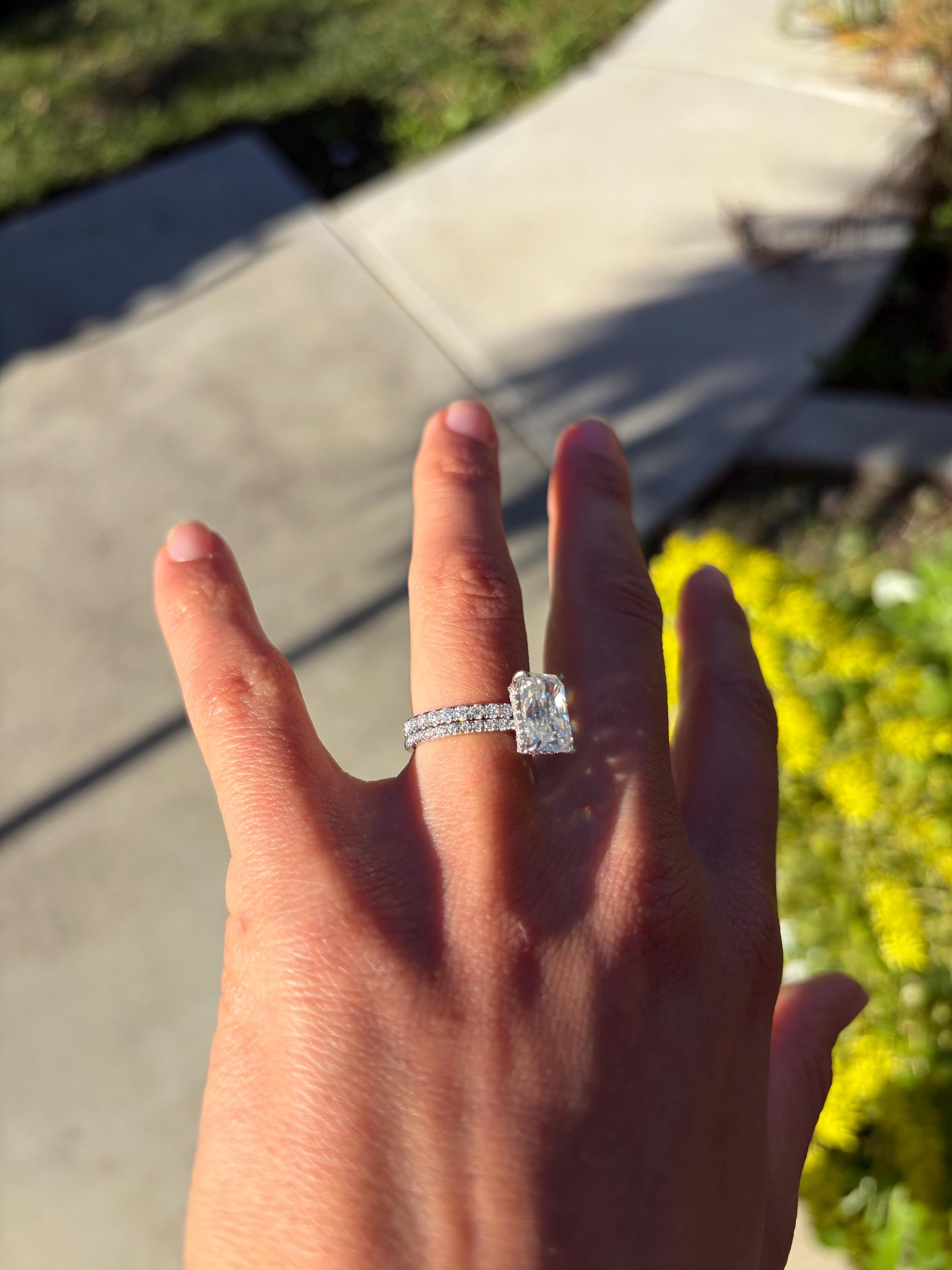 This ring and wedding band came exactly how I had hoped. They are near replicas of my wedding ring and band, close enough that I can wear them around my fiancé and he won’t even know if they are the real ones or not. Of course they don’t feel as sturdy and if you look close enough, you can tell the difference between this and my real wedding ring and band. But as far as replicas go, these are top-tier. Going to be amazing for traveling, working, and wearing anywhere I don’t feel safe or comfortable bringing my real ring.